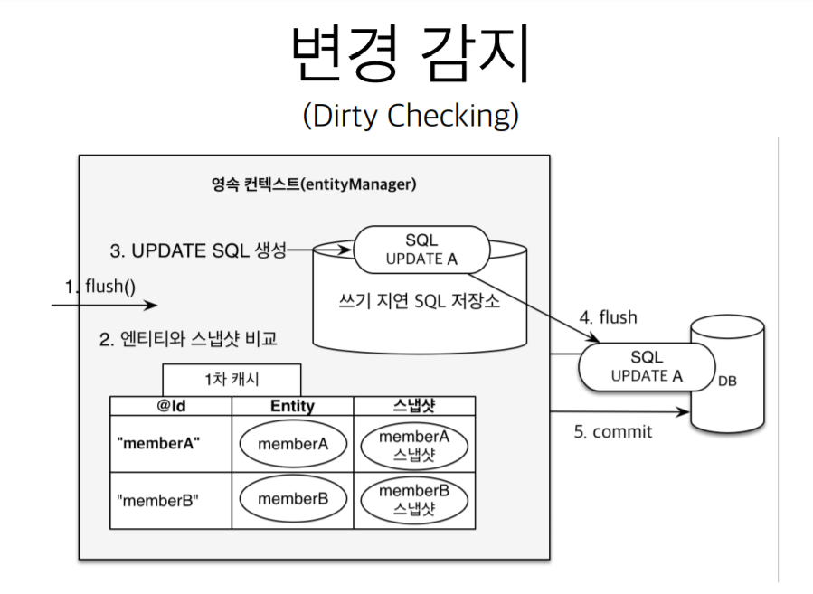 트랜잭션을 커밋한 시점에 스냅샷과 entity를 비교한다.