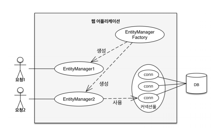 웹 어플리케이션을 개발 한다고 하면 고객의 요청이 올때마다 entityManager를 생성하고